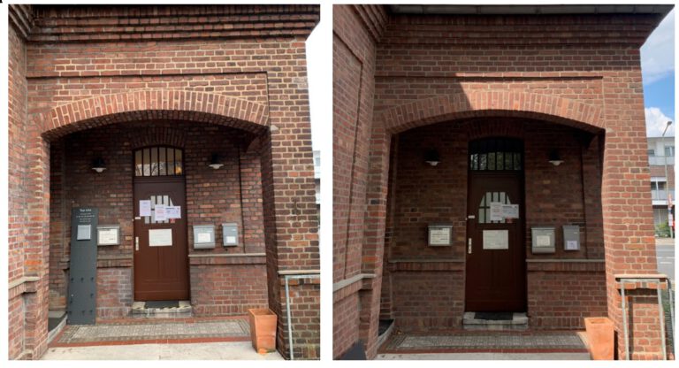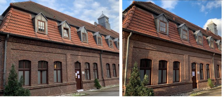 Die dargestellten Fotos zeigen Aufnahmen vor und nach der Sanierung.