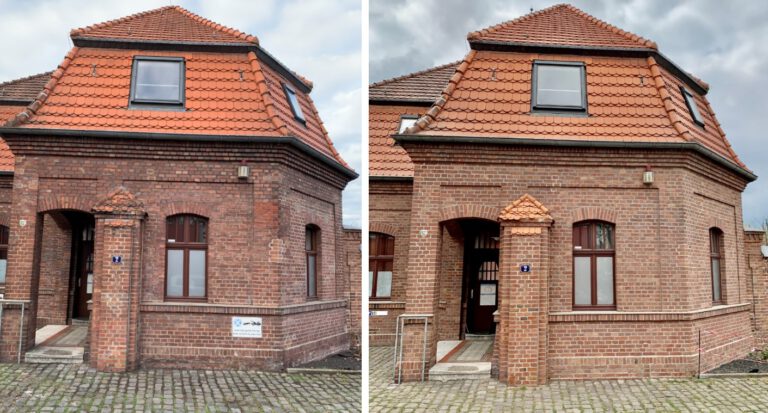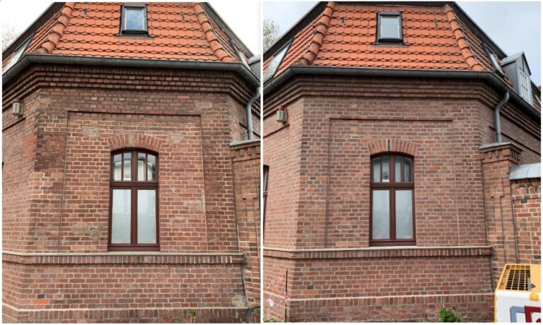 wurde die Fassade mit einem schonenden Reinigungsverfahren gereinigt.